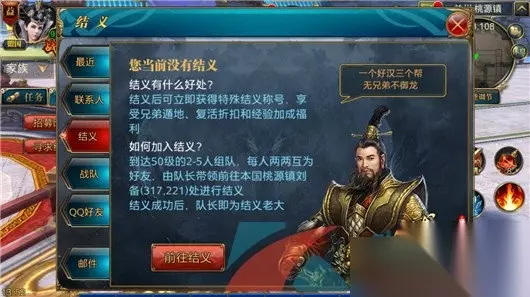结义流程介绍 1、首先我们需要开启自动寻路,由队长带领2-5队伍去到桃源镇刘备位置; 2、到达这里后,接取结义任务,必须要满足是好友的前提下才可以组队结义;