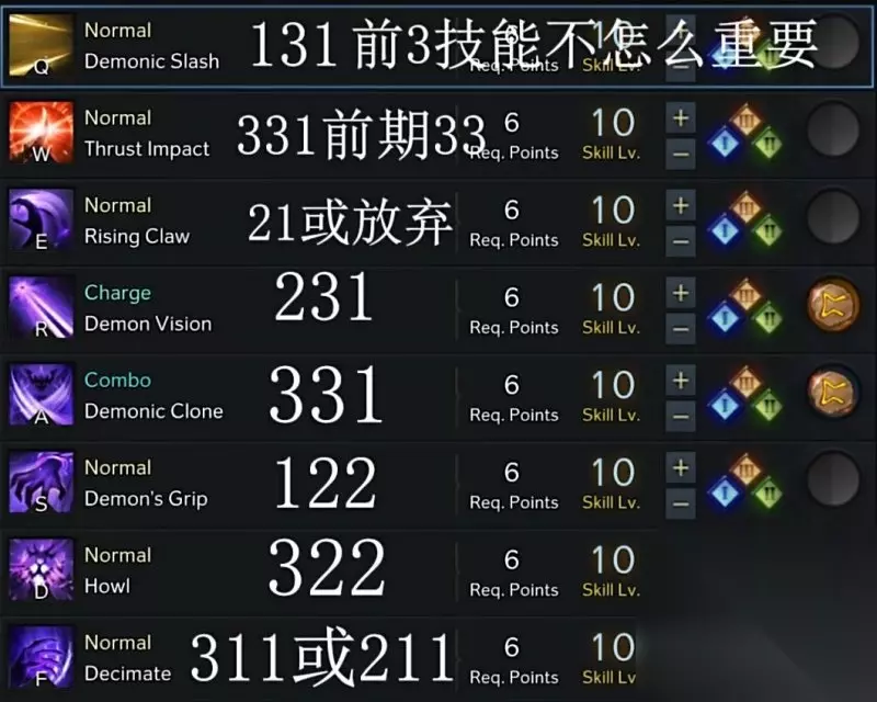 CD最短的技能,可以带上疾行符文来刷新其他技能,其他就是哪里亮了点哪里非常的轻松。 技能加点及刻印搭配