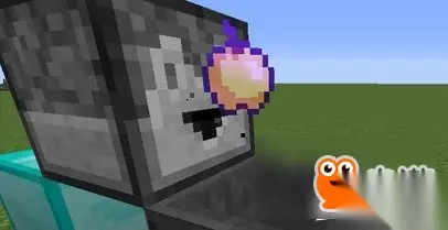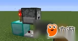 3.方块上面放置一个红石火把,贴着红石火把放一个投掷器,朝向任意,一般选择朝向漏斗。