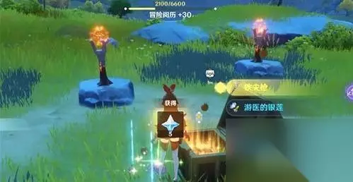 原神中翠玦坡东南、渌华池北方的9个火炬谜题,需先点燃中间连成三角形的三个火炬,注意不能逐个点亮,完成后可开启中间宝箱获取奖励。