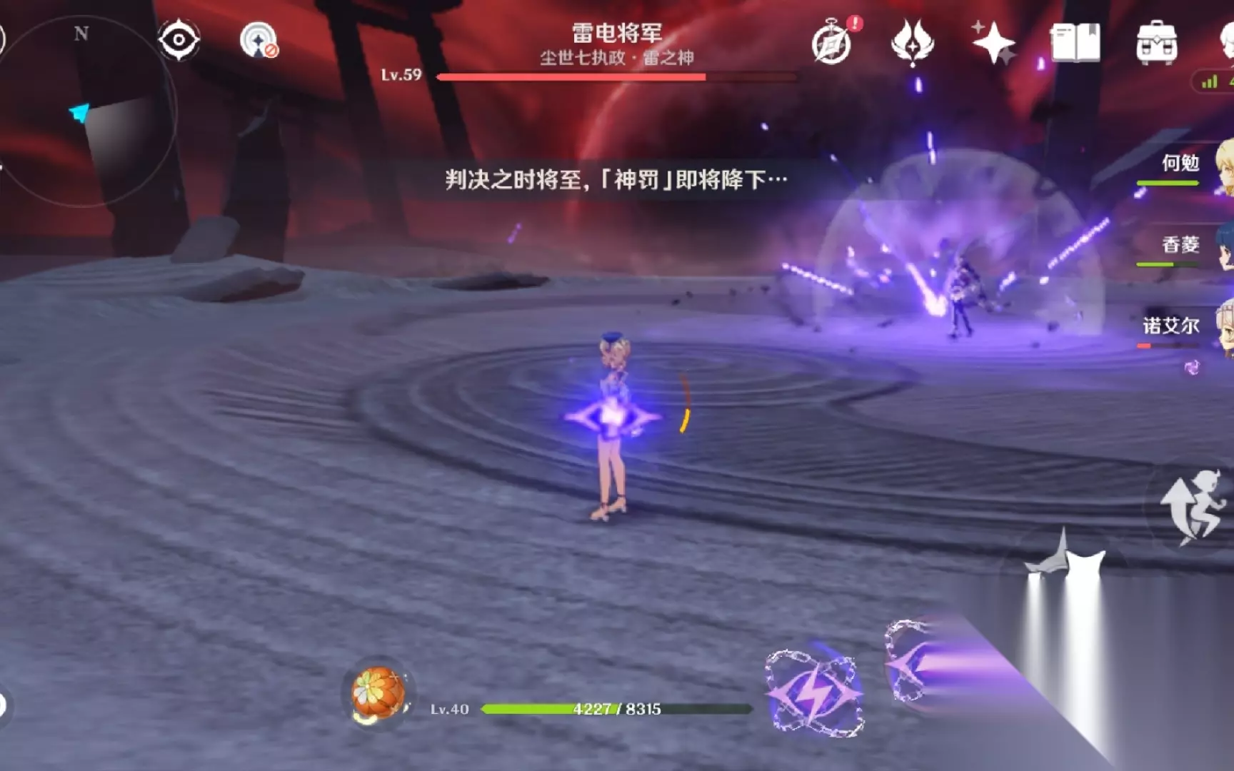 单挑雷电将军,咱们得先明白她的机制特点。这位boss免疫雷元素伤害,所以千万别带雷系角色上场,不然就是在刮痧。她有两个阶段,一阶段动作快但伤害一般,二阶段伤害爆炸但动作大开大合。最关键的是一阶段打到三分之一血就会触发剧情杀,所以不用想着把她打死,重点是怎么活到那个时候。推荐带上盾辅或者奶妈,钟离、女仆这种有盾的角色能让你舒服很多,行秋的减伤也很实用。
