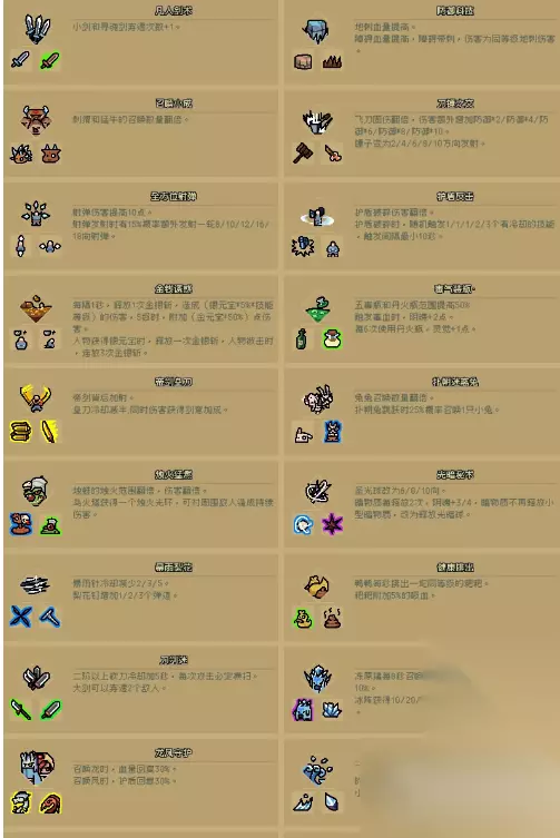通神榜神通合成表怎么样 1、龙凤守护:龙太子+凤凰女(登场时回复30%血和护盾) 2、飞凌落浪:小浪沉+ 飞凌锭(飞凌锭在指定位置生成一次小浪沉, 小浪沉造成的10%转化为护盾) 3、破晓:闪电链+黑球(闪电链每次命中产生一个同等级的黑球最小间隔0.5秒 ,黑球每两次释放提高一点移动速度) 4、挥砍增幅:挥砍+飞轮(挥砍范围提高,飞轮物理冷却减少) 5、羊肉卷:贪吃羊+菜刀牛娃(贪吃羊死亡时向8方发射羊豆,菜刀牛蛙死亡时向6方发射菜刀) 更多合成可以参考图片