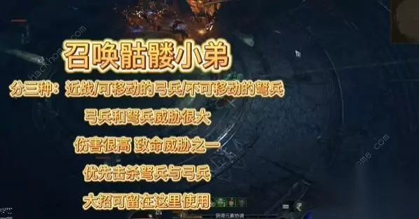3、接着是随机召唤骷髅小兵,小兵分三种,一种是拿刀或者活的近战,一种是可移动的弓兵,一种是不可移动的弩兵。