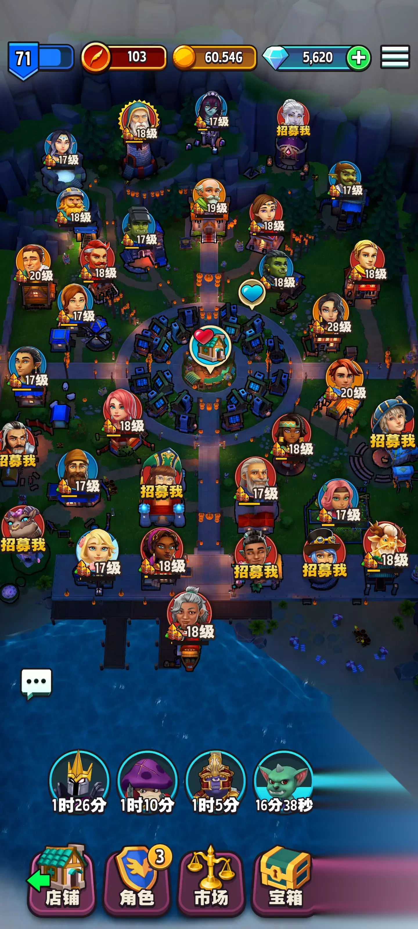 英雄培养与冒险系统形成闭环经济,玩家需为战士、法师等职业搭配专属装备,例如圣骑士套装可提升防御,巫师法杖增强法术强度。派遣英雄挑战地下城可获取稀有材料,但需平衡队伍配置,坦克前排抗伤、输出后排爆发、治疗维持续航。近期新增的 "技能重掷骰子" 功能允许重置英雄技能,配合威力强化品提升属性,使冒险胜率大幅提升。值得注意的是,英雄等级决定可装备的道具阶级,需同步推进店铺与英雄的成长节奏。