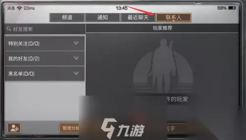 第二步:进入世界频道设置后,选择方向键所指的联系人,然后下方会出现当前联系人列表,以及添加好友的页面,在下方框内输入想要添加好友的名字。