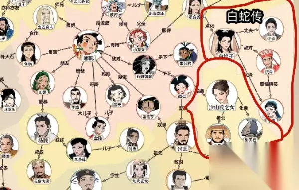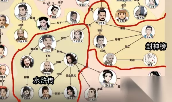 爆梗找茬王神仙人脉大全要补齐三国演义、后羿射日、唐朝、西游记、七侠、红楼梦、哪咤、白蛇传、大禹治水、清宫、宝莲灯、水浒传、金瓶子和封神榜的人物关系图。
