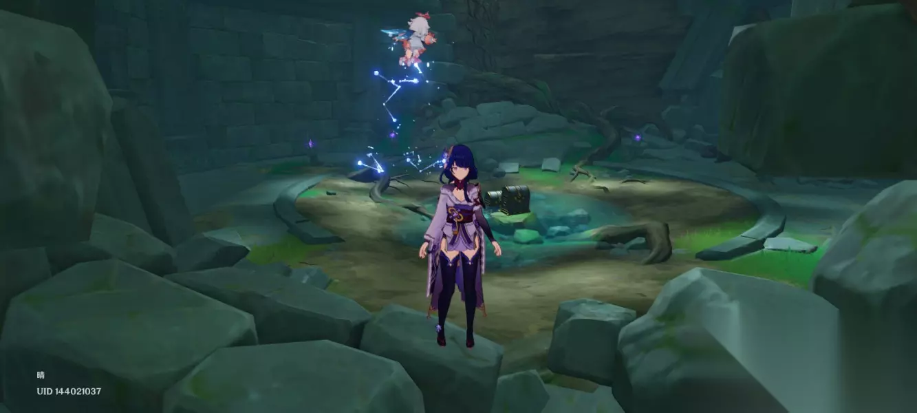 [第一个石板] 我们来到第一个地方先用雷羽照下雷鸟,然后根据旁边的石碑提示按顺序点亮石头就可以获得以后精致宝箱里面包含一个石板.