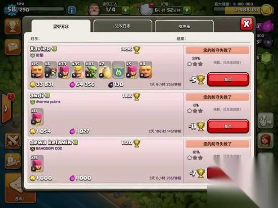 1、首先,一定要分库。很多新手都喜欢把自己的资源保护的紧紧的,你要知道,摆的再好的阵,高本的很好推、8本推7本和7本推6本一样简单,所以把库放中间集中起来是很蠢的一种做法、一旦被推,全部都丢了。所以分库是必须的,最好把5库和大本分开放,这个阵呢,完美的做到了这一点。 2、第二点呢,也是新手最爱犯的一条错误,就是把你的部落放边,或者要些没用的兵守家、部落放边或者外置很容易让部落捐的兵让别人引出,守家就成摆设了,本阵呢除非开始对手拿一个胖子引,不然,弓箭和小黄毛引不出的,等对面全上兵力,哈哈,我的守家部落就会打掉他们很多兵力、这里我推荐守家最好是弓箭手和法师,7本有20个单位推荐2法师12个弓箭,或者全法和全弓箭都行。 3、大家都看到我10点方向放的是金库,其实我该升的都生了,大本没升外,就差一金库,一水库和4级王升5级王,所以我选择把黑油内置,主要升级王的黑水不好打,如果升完王黑油少就把黑油和10点方向金库换了。这个阵呢,现在除了黑油重点保护,圣水也一样。因为我现在不缺金币,升大本要8天怎么打都能8天抢满金币,而且圣水可以造兵捐兵很重要、 4、重点强调下,造建筑前把你金币能花完就花完,升墙,然后把金库放我这两个位置,抢了就抢了,反正不多,如果金币多,圣水少,就把金库和圣水库互换,现在破坏到一定程度才有护盾,所以你想一个库都不被破那是不可能的,要有选择性的放弃1到2个库,这里我说下防护程度,黑油位置防护力度最高,2个圣水位置并列第二,12点方向金库第三,10点方向金库第四。 防守记录: