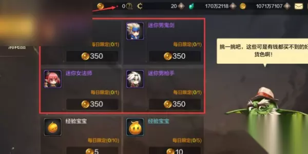 9、积分商城 在商城的积分商店中,用积分兑换无属性的迷你冒险家宠物。 10、希洛克攻坚战 挑战希洛克征战,累计获取350个神识之种即可兑换迷你崔拉&昙娜宠物礼盒。 11、永恒大陆副本 达到探险等级30级即可获得三个宠物,如迷你奎因碧宠物。