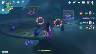 第三块石板: 根据石板具体位置,将石牌归位。 将图中两个圈圈的两个图案推入外侧等待即可。