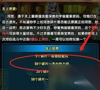 消耗50个河图碎片,可在江陵太上老君处兑换