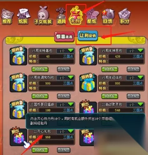 22齐心礼包(售价960三国点)必得10个齐心
