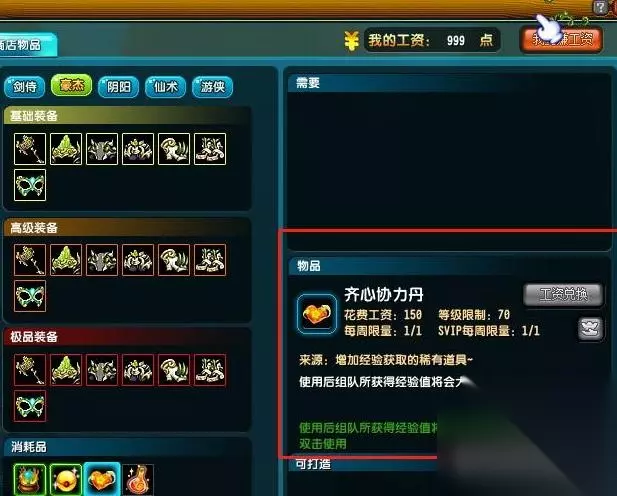 工资兑换,花费150点工资,每周可兑换一次