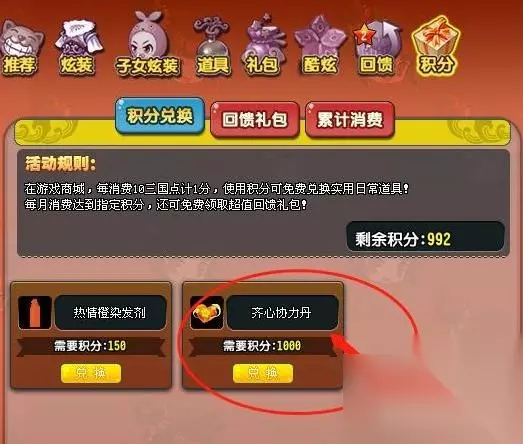 在商城消耗1000消费积分进行兑换