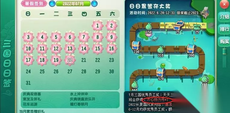 三国日日签,每月集齐120签到值,可以领取一个。