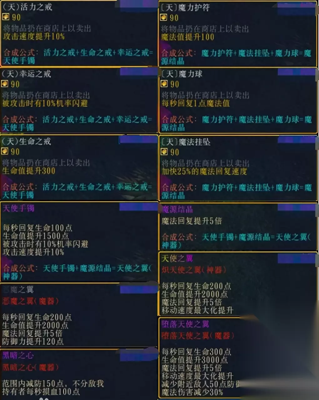 六级前必合装备图 当第一幕游戏进入到中期时,我们在努力合成专属武器途中,在下一个boss出来之前砍死当前boss并且抓取坐骑(天上飞的一般要先打死才有几率出小宝宝,诱捕用在逃跑小宝宝身上,但脸黑的话一定不要纠结) 后续需要升级已有的aoe技能及治疗,钱够多学个光环技能。 期间boss掉落的魔器按需求自行分配即可,用来补齐短板。如加智力和给盾的交给法师。 关于打BOSS的注意事项: 本着在下一个boss出来之前打死当前出来的boss的原则。一般来讲只要前期发育还ok那么逐个杀死boss不是什么问题。怕的是多个boss同框出现,这样会大大提升游戏的难度,破坏你自己的游戏体验! 地图解析: 雪地boss一般出弓手,法师的专属物品(如果是弓手杀,极有可能是弓手的专属,如果是法师就可能是法师的,但也有小小可能相反)及一个水,风,雷,冥中的随机一种三级物品,当然也有一定的概率出现黑暗之心(可与)或者恶魔之翼;另外雪地的怪会随机爆水,风,雷,冥的物品,且有可能爆弓手法师的专属物品。 火山boss则是火和土的物品加战士专属,同样也有一定概率出黑暗之心和恶魔之翼;同理火山怪的东西是火土外加战士专属。 墓地boss则是战神,死神物品的外加战士专属,同样可出黑暗之心或者恶魔之翼,墓地的怪掉落物品则为战神死神及战士专属物品。 装备合成公式: 法师专属=符文宝石+魔法杖+精灵树枝 战士专属=阵法宝石+魔法剑+赤龙牙 弓箭专属=水晶箭+魔法弓+黑龙筋 中期套装: 水神:法师专属 风神:弓箭手专属 火神:战士专属 土神:战士专属 后期套装: 战神:战士专属 死神:战士专属 雷神:弓箭手专属 冥皇:法师专属 精灵王:法师专属 注:法师先合出灵木法杖,持灵木攻击一棵树会变木精灵守护者,死亡掉灵木之心+灵木权杖=精灵王权杖,装备精灵王权杖后,输入-JLW查看合成精灵王战铠的方法。