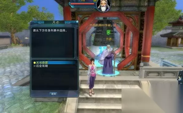 活动时间:全天 所在线路:任意线路 等级限制:45级以上的玩家 任务流程: 1、玩家来到河阳月老【185 104】处可以接到任务;