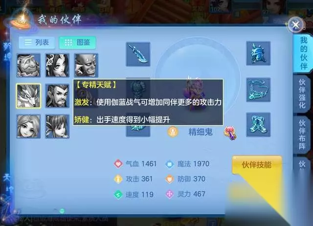 精细鬼 精细鬼同样也是佛门,但是专精天赋让他更具攻击能力,非常适合物理输出门派选择,首先是迦南战气可以提升同伴更多的攻击力,其次是他本身的出手速度提升,所以不管是敏攻流还是耐攻流,物理职业都很需要他的帮助。