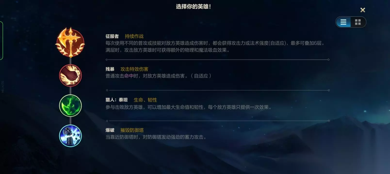 二,腕豪的天赋和召唤师技能 ①腕豪的天赋一般选择带征服者,残暴,泰坦和爆破。征服者很契合腕豪,腕豪可以在短时间内叠满征服者的层数。爆破则能够让腕豪更快的推塔。