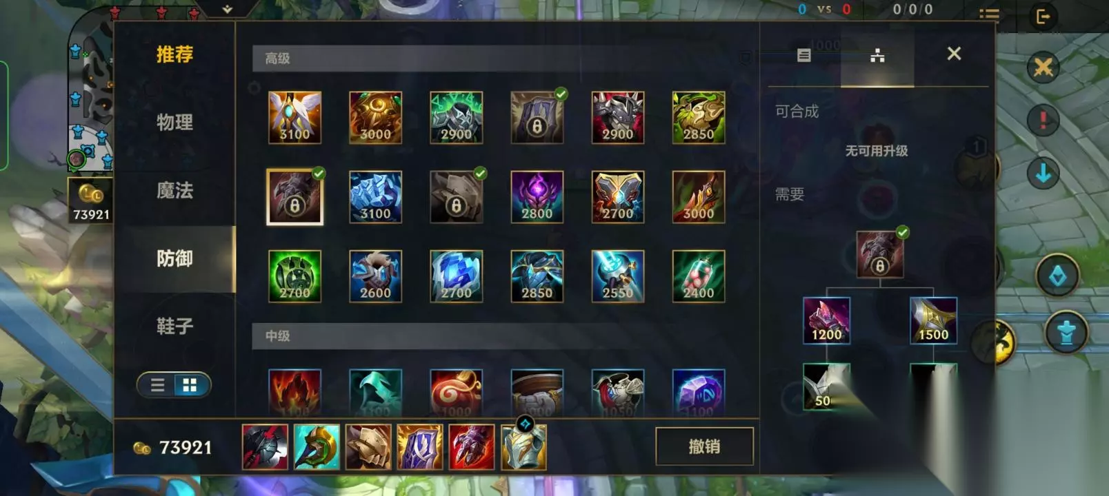 ②鞋子可以选择铁板靴或者水银鞋来提高我们的容错率,附魔可以选择推推棒、石像鬼或者传送。第五件装备选择血手,血手能够给我们提供大量的攻击力和生命值,残血时还会根据我们最大生命值来提供护盾,面对AD或者AP效果都非常不错。最后一件可以根据局势选择,敌方物伤多可以出兰顿或者死舞,法伤多可以出自然之力。