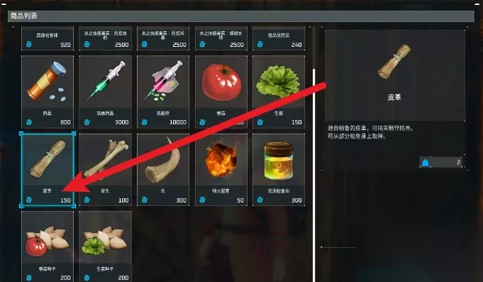 3、进入购买界面,点击【皮革】即可。