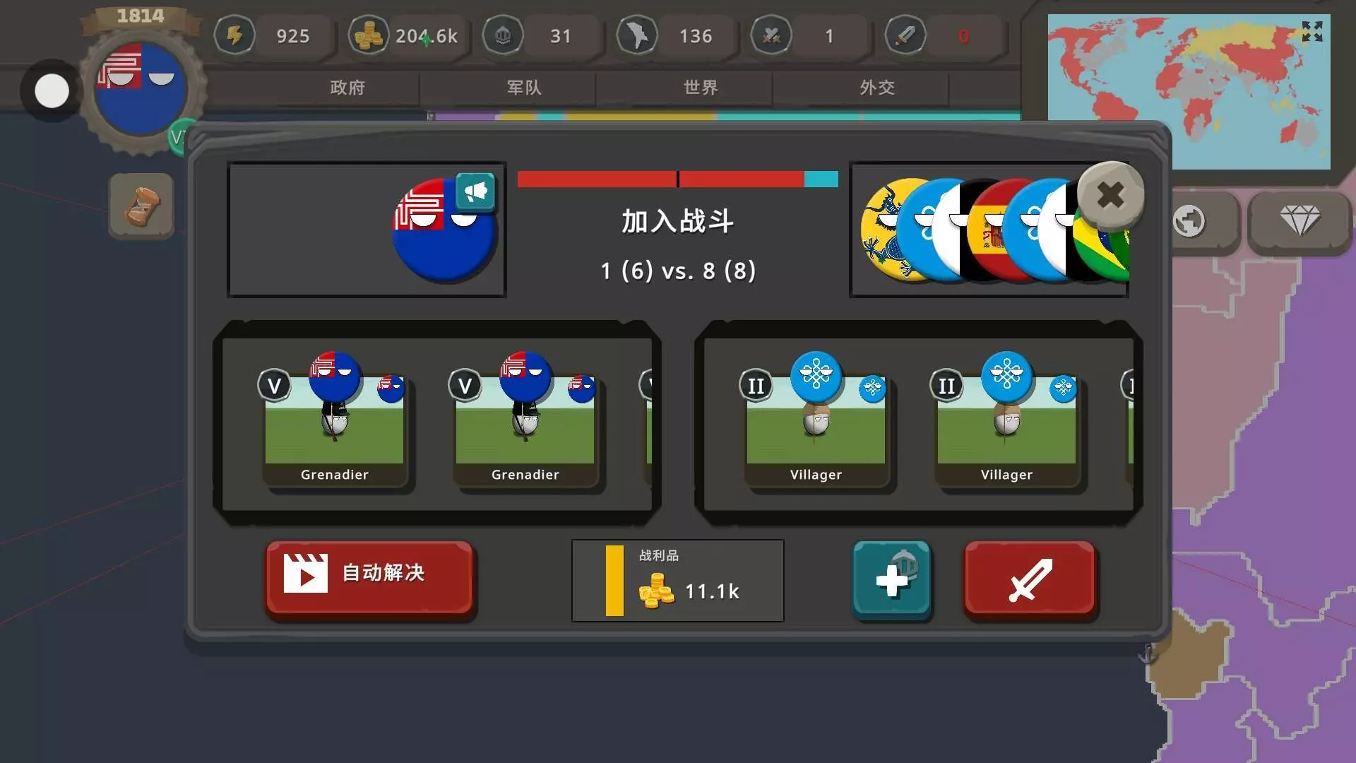 (是模仿上次瑞士的打法)反对我的国家都成了我的傀儡,依旧人海战术。