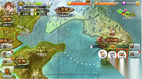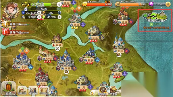 组建军团后,可以通过征战地图右上方的王国领土战进入领土战地图