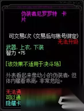 DNF伪装者尼罗罗特卡片怎么样?地下城与勇士国服测试服已经登录100级版本,很多玩家都想知道DNF伪装者尼罗罗特附魔卡片属性怎么样?下面我就给大家带来详细介绍,一起来看看吧! 伪装者尼罗罗特