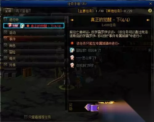 真正的觉醒下: 1、领取任务后到“王者峡谷”并移动到事件专属城镇与罗伊进行对话。