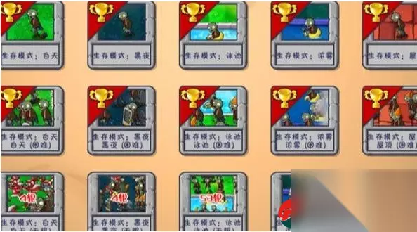 植物大战僵尸生存模式关卡攻略大全 生存模式中简单的有4轮,困难的有9轮,而且玩法跟无尽版一样,是一轮比一轮难的,这个生存模式中分为白天、黑夜、泳池、浓雾、屋顶等地图场景。