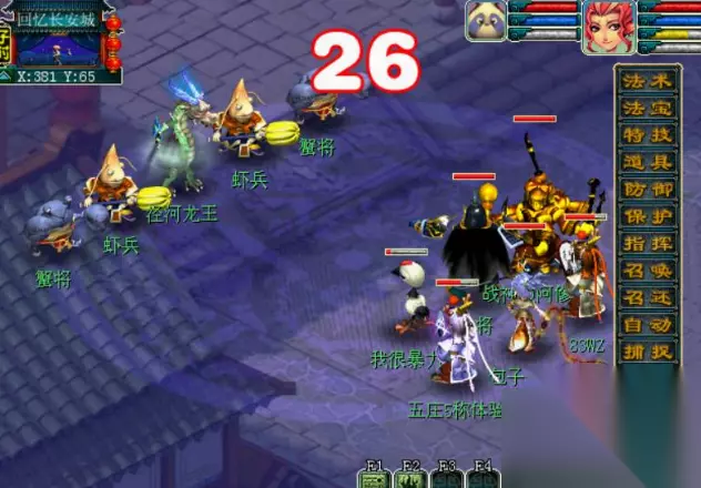 5、破坏了四个进水门后,龙王大发雷霆布下法阵,以龙王为阵眼,一支队伍与龙王战斗中,其他队伍才能与虾兵蟹将战斗。