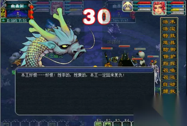 4、击败“火、水、土”三个属性的原形怪后,幕后真凶泾河龙王幽灵现身,泾河龙王幽灵有三个分身,击败他们后本环完成。