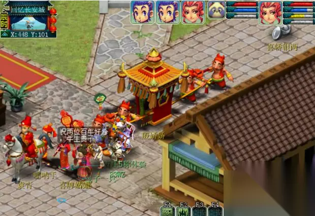 三、第三环:抢亲之日(任务时间:90分钟) 1、找袁守诚(长安城173,14)传送到“回忆长安城”。跟着喜轿走,看看会发生什么事。