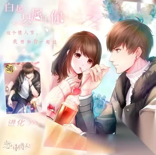 新增礼包:甜蜜时光礼包 白起·只属于你 情人节限定SR 获得羁绊 即可获得白起的【短信】 情人节礼物 羁绊升星·三星 即可获得白起的【朋友圈】 向前走 羁绊进化 即可获得白起的【短信】 小狼玩偶 -获得羁绊且与白起好感度达到5级 可解锁【约会】:白起·情人节之约 白起·甜蜜如你 情人节限定R 获得羁绊 即可获得白起的【朋友圈】 花很美 羁绊进化 即可获得女主的【朋友圈】 难忘回忆