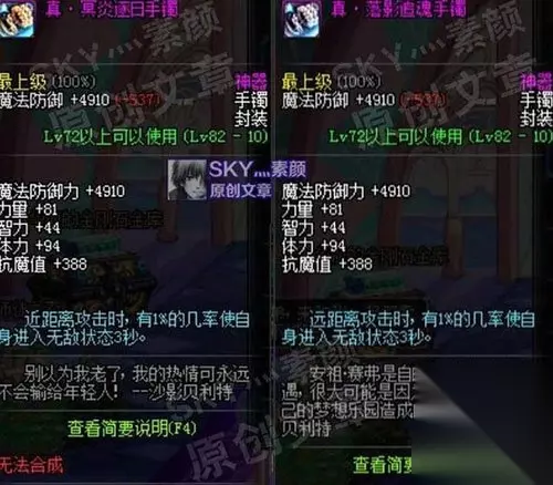 冥炎逐日/落影追魂手镯 冥炎逐日/落影追魂手镯:基础智力+44点,近/远距离攻击时有1%几率使自身无敌3秒。智力加的数值一般,无敌状态对奶妈来说意义不是特别大,并且这两件的无敌也比较难触发。 [各种活动礼包神器]