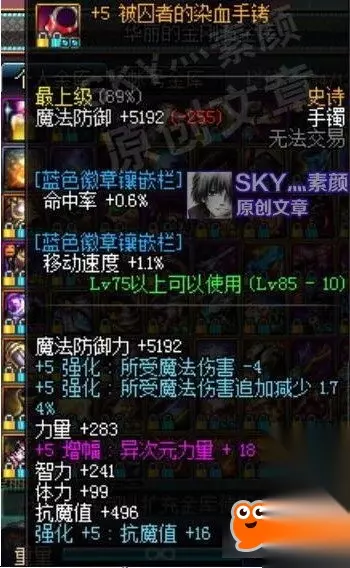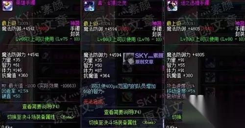 假紫手镯 九十级的假紫手镯智慧属性调至S,有30点左右的智力加成,并且获取相对简单。在不想费太多心思时,假紫也是很好的选择。 [总结] 目前游戏中所有加智力的手镯装备基本就是这些,有部分只加十几点的粉装就没写上去,列出来的意义也不大。简单概括一下奶妈手镯的选择: 被囚者手铐为目前智力加的最高的手镯,但需要深渊获取;没有手铐时,追求高智力的玩家可以考虑增幅程度不错的英雄手镯;不追求高智力的玩家,最省事的就是用异界手镯或者假紫手镯;最后希望能对手镯部位选择存在困惑的奶妈玩家带来些许的帮助。 DNF2020活动 欲望之塔