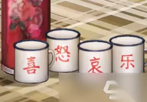 3、然后去女朋友房间最上面的盒子里拿到电池,电池需要放到电视下面的遥控器里。电视密码是:16/28/37,客厅水杯梅兰竹菊反过来是喜怒哀乐,女朋友房间床尾柜子密码就是:哀乐忌春