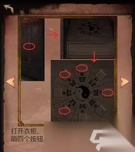 7、之后拿到照片返回道士那里,放上小熊和照片,他让我们去楼道找到另一张符。然后拿到火钳,对着外面垃圾桶拿到缺失的字,左边铁窗还能拿一个打火机,红字贴到白象街上,有钉子可以转动,拼成如图所示:4号,这里比较难转动的话,可以长按钉子他就会自己动,到合适的地方松手就行。