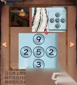 2、塑料卡片可以拿到左下角亮着的安全通道灯牌解密,得到信箱锁密码:寅申酉卯,首先去女朋友房间看到右边桌子日记本.