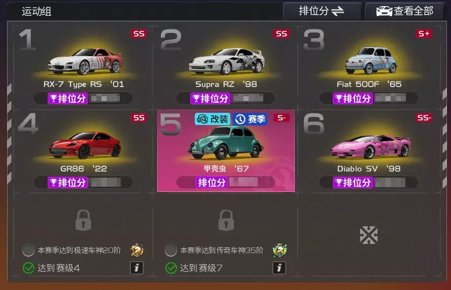 除此以外还有一个好消息!参与改装巅峰赛玩法获得的巅峰分可以1:1转变为排位赛中的排位分,是可以参与到正常排位分的统计哦~(简单来说,如果巅峰分超过你正常排位的第6辆车的排位分时,此巅峰分就会直接计成你第6辆车的排位分~)