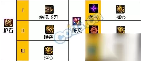 3.护石/符文 护石选择方面,依然最推荐摧心+瞬袭+绝境飞刃, 如果是使用高科技战术强化靴(手搓鞋)的玩家,可以放弃飞刀护石,使用死亡连舞护石。 符文配置: 紫色摧心*3,红色摧心*3,蓝色摧心*3