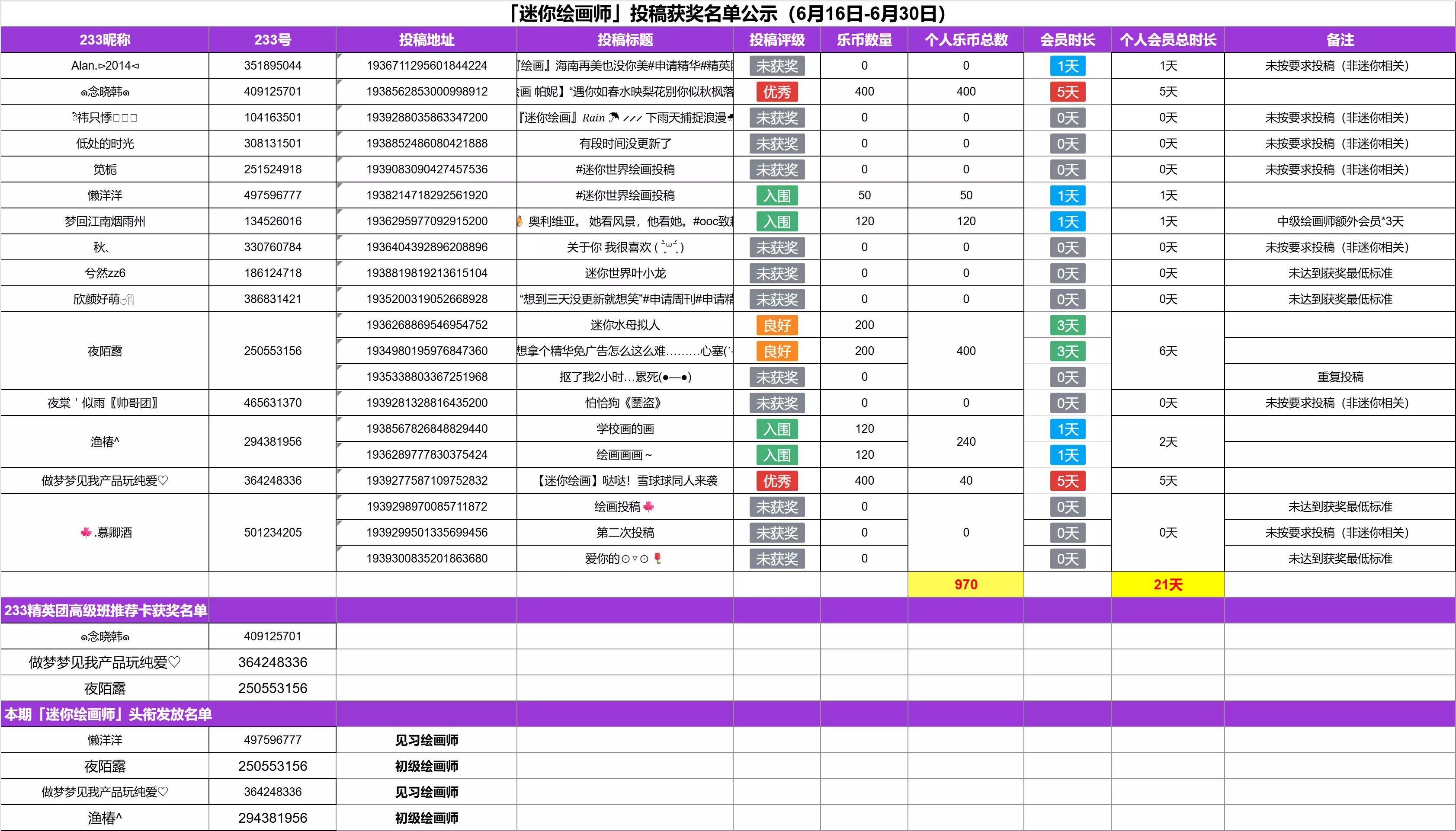 叮咚,上期获奖名单出炉啦-让我们康康都有谁获奖了吧!欢迎大家持续参与到迷你绘画师招募活动中来,欢迎大家踊跃前来投稿尝试哦!#迷你世界绘画投稿