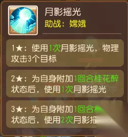 通过消除方块,助战会使用对应生成的技能输出,1~3个方块分别激活1~3星技能,技能星级提升不仅增加造成的伤害,还会附带一定特殊效果(例如3星月影摇光会附加桂花醉增益,概率提升攻击目标)。