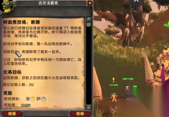 2、去找古尔戈索克,接取任务鲜血竞技场:断蹄的任务。