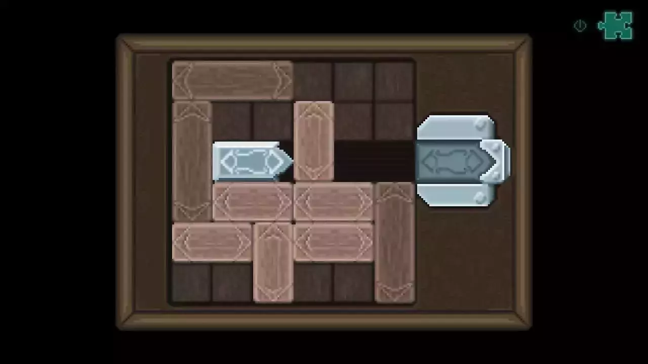 谜题解析:移动木条,为金属块让开道路,使它到达终点,我姑且把这种谜题也称之为华容道。总共有三关,其实难度都不大,只要多次尝试就能够成功。