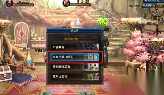2、在传送阵目的地选项中,选择前往西海岸港口码头。