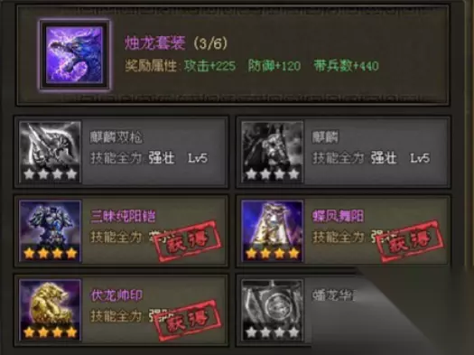 法术型觉醒将如周瑜、诸葛亮需侧重技能强化。烛龙套装提供高战法伤害与生存能力,适合持续输出环境;凤凰套装战法攻击更强但生存较弱,适合速战速决。周瑜若搭配虎贲铠和虎贲靴,可最大化红莲爆破与火烧连营的威力,而烛龙套装的综合属性使其成为多数法术将的通用选择。