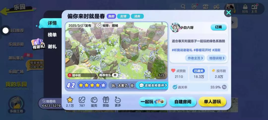 地图关卡风格看起来也很治愈哦,周围的小花朵看起来依然是超级美的,关卡比较长哦,十分钟左右才可以跑完呢🎐