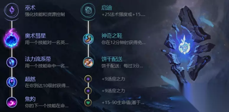 泽拉斯符文推荐 主系点出焦灼和奥数彗星,因为我们的技能附带减速和定身,命中时可以必中一发奥术彗星,这样我们的线上压制力会大大增加,副系点出神奇之鞋和饼干来增加续航能力 泽拉斯出装解析