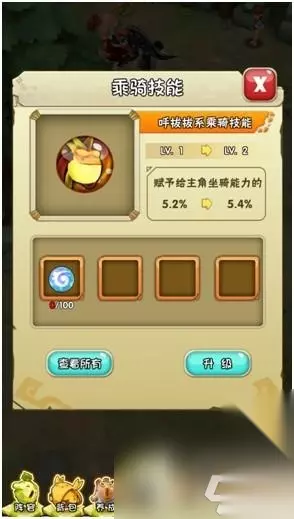 1、 骑宠系统 特有的宠物可以成为主角的坐骑,根据坐骑的自身属性百分比提升主角的基本属性, 坐骑技能:提升坐骑技能后,坐骑主人提升相应属性百分比 坐骑技能升级消耗:消耗相应升级材料进行升级